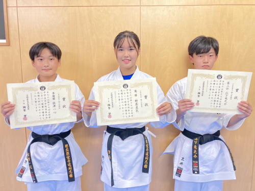 日頃の努力が実を結び、文部科学大臣旗『未来くん杯』全国中学生選抜空手道大会へ京都府予選突破した3名が出場を決めました。