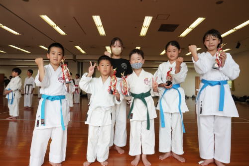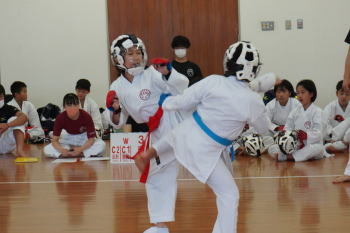 基本と体力づくりはとても厳しい練習ですが子供たちは汗だくになって必死についてきてくれました。今年の組手競技は団体戦。初めて試合する子もいましたが、中学生が監督となり、分からない子に教え、組手の練習内容も考えて、それぞれのチームが監督を中心に協力しました。その姿はとても立派で、ひとりひとりが非常にいい試合でした。