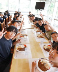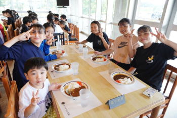 本部道場、スイトピア強化生、アクオン強化生、小倉道場、亀塾の参加となり、総勢60名での熱くて、楽しい練習会となりました。観光バスではにぎわい、昼食のカレーライスは一人も残さずに食べ、休憩中のビーチボールので遊びは元気いっぱいでした。