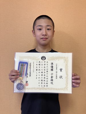 日頃の努力が実を結び、文部科学大臣旗『未来くん杯』全国中学生選抜空手道大会へ京都府予選突破した3名が出場を決めました。